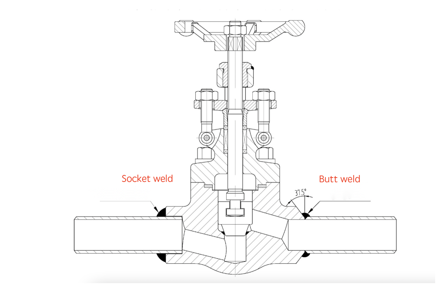 So for high-demand working conditions that cannot accept even a slight defect, a butt welding connection is chosen for convenient 360-degree inspection. Socket welding can be used for valves below 2500LB and DN50.